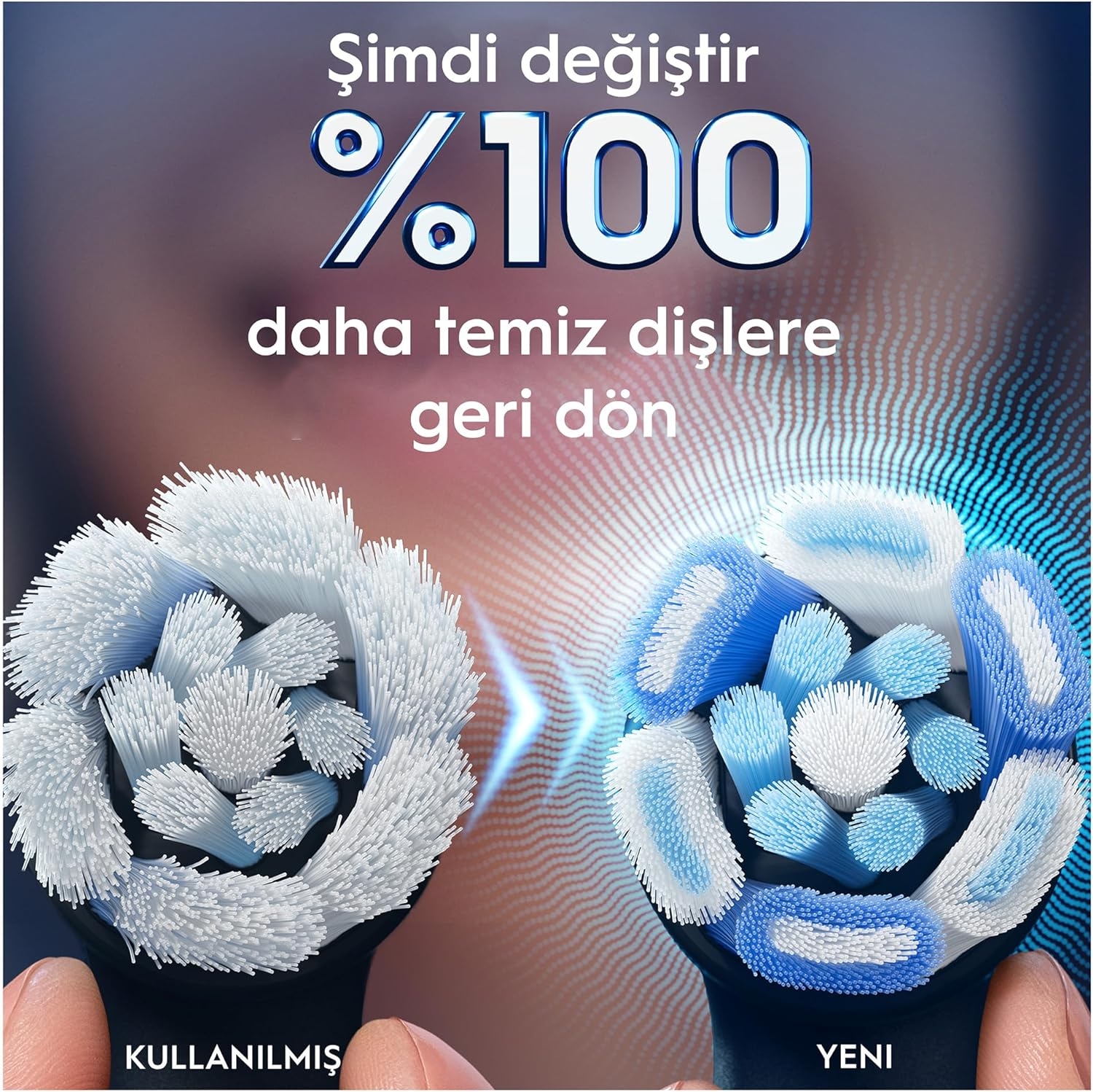 Tıpkı manuel diş fırçalarında olduğu gibi, şarjlı diş fırçaların başlıklarının da her 3 ayda bir değiştirilmesi gerekiyor. Bu değişim hem etkin temizlik hem de hijyen açısından büyük önem taşıyor. Oral-B’nin başlıklarındaki renk değiştiren fırçalar, değişim zamanı geldiğinde renk değiştrerek sizi uyarıyor. Ayrıca Oral-B’nin yedek başlıkları, ulaşılması zor alanları temizlemek için profesyonel diş hekimliği araçlarından ilham alınarak tasarlandı. Bu da etkili ve sağlıklı temizlik için en ideal tasarımı ortaya çıkardı.