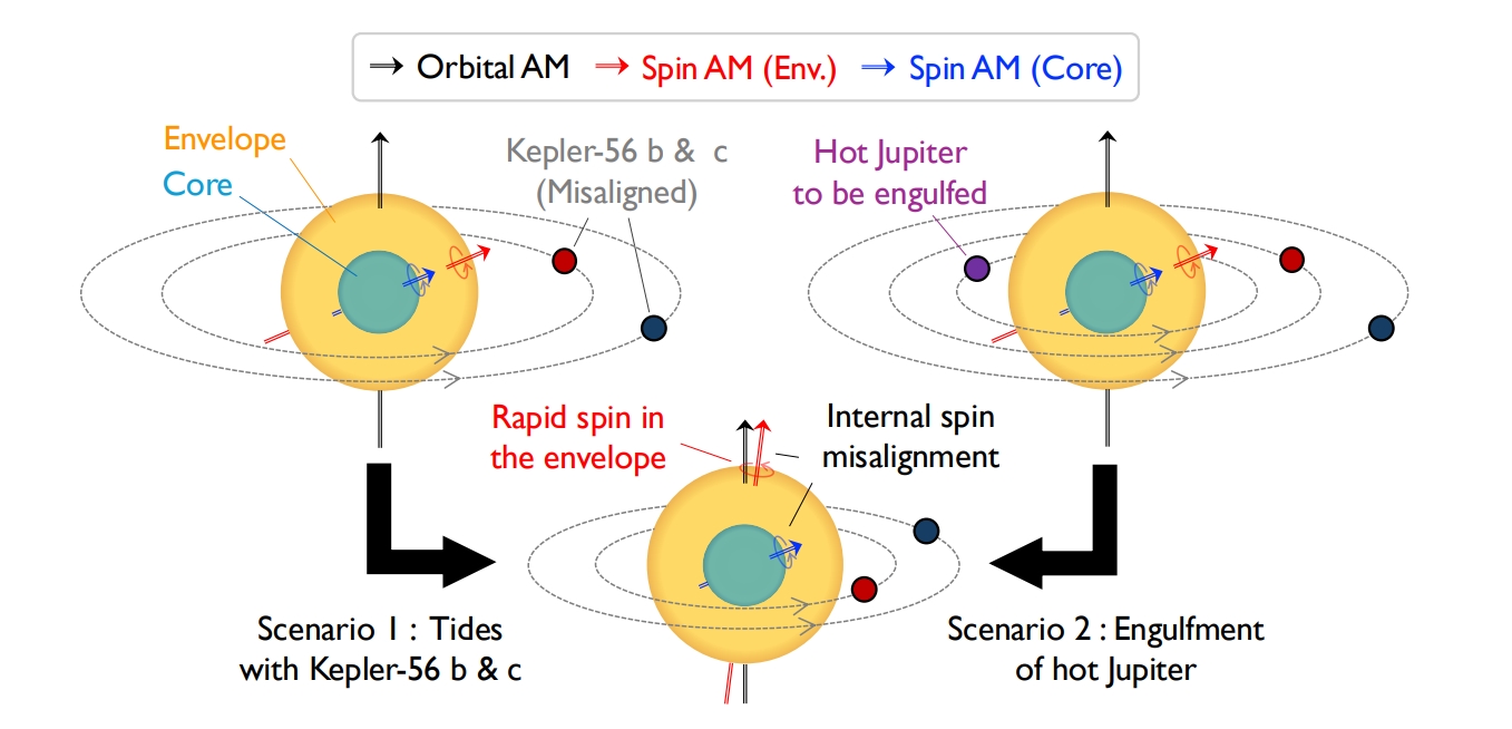 Makale, Kepler-56’nın doğduğunda doğal olarak yüksek bir dönme hızına sahip olabileceğini de olasılıklar arasında değerlendiriyor. Ancak bu varsayım, yıldızın çekirdeği ile dış katmanı arasındaki hizalanma sorununu açıklamıyor. Ayrıca, eğer yıldız bu kadar hızlı doğduysa, astronomlar için yeni bir soru ortaya çıkıyor: Bir yıldız doğduğunda neden bu kadar hızlı döner? Tokuno’ya göre bir olasılık, yıldızın genç yaşta bir gezegeni yutarak enerjisini artırmış olması. Böyle bir çarpışma, hem yüksek dönme hızını hem de çekirdek ve dış katman arasındaki uyumsuzluğu açıklayabilir.