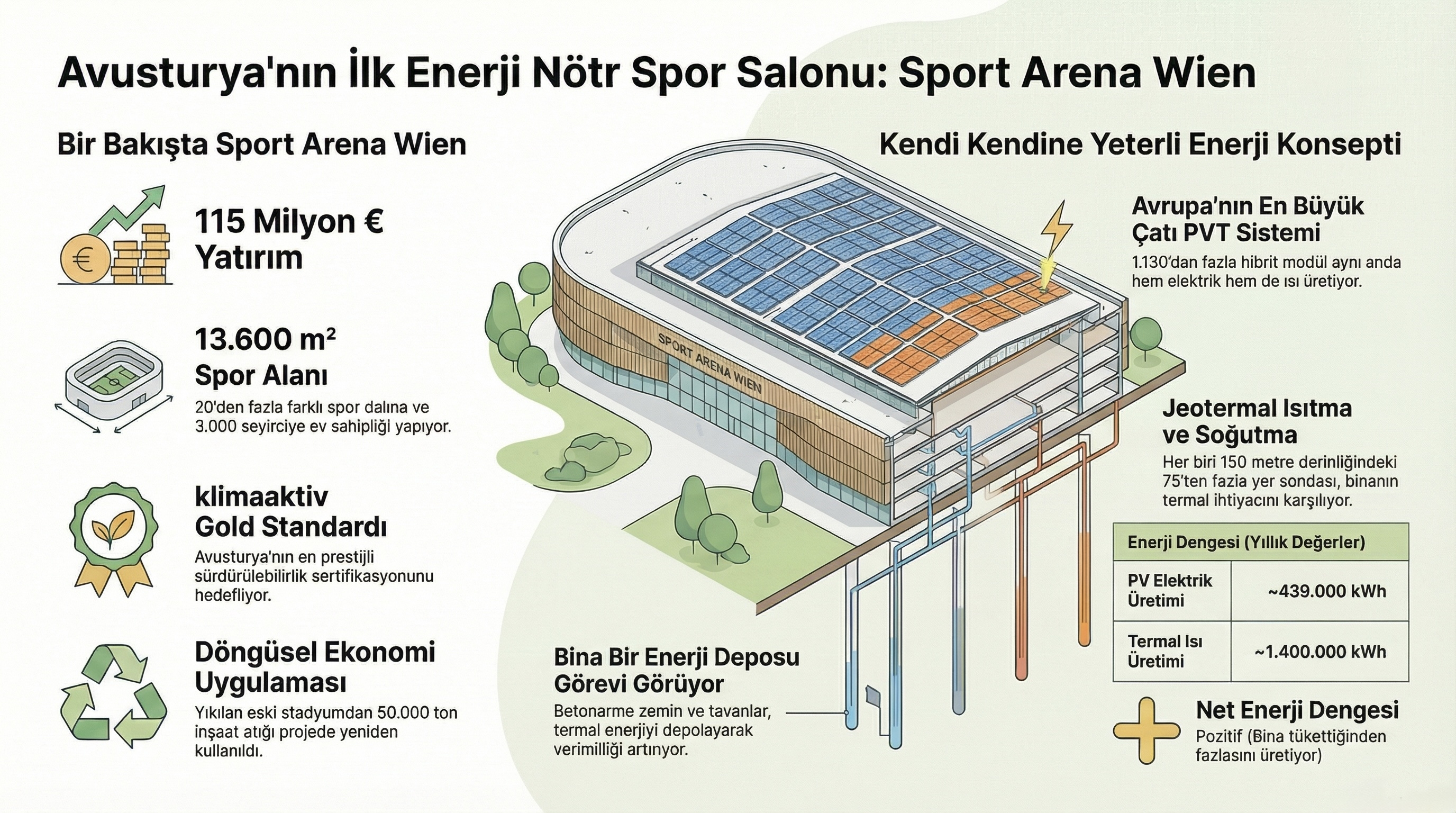 Devasa bir spor kompleksini büyüterek tekrar inşa etmeyi planlayan ve binanın kullandığı enerjiyi kendi kendine üretmesini amaçlayan Viyana, diğer şehirlere de çok örnek olacak bir projeyi hayata geçirdi.